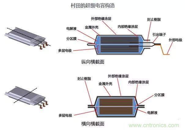 村田致力于克服這些缺點(diǎn),研發(fā)出新的超級電容。研發(fā)出層壓型超級電容。