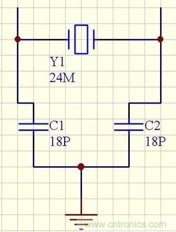 晶振的負(fù)載電容=[(C1*C2)/(C1+C2)]+Cic+△C