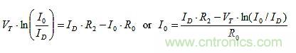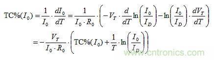 TC%(I0) = TC%(IE)的設定可以建構如下。R0上的唯一變化來自VBE。因此,由T引起的I0的分數(shù)變化是: