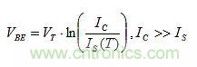 VT和IS都對TC(VBE)產(chǎn)生影響。IS對VBE的影響大于VT,且極性相反,導致對VBE的總影響約為–2mV/℃。因此,取消IS影響比VT的更重要。
