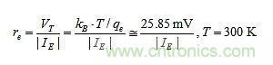 在rM中最麻煩的一項是re,因為它隨著溫度和發(fā)射極電流IE而變化,根據(jù):