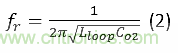 在等式2中,Lloop是高頻回路電感、由高頻去耦電容、eGaN FET(Q1和Q2)以及元件在PCB的連接組成。Co2 = Coss + Cpar包含Coss,它是在Q2阻塞電壓下的底側(cè)FET Q2的輸出電容。Cpar是開關(guān)節(jié)點處的寄生和探頭電容。本文所用的演示板的Lloop估計約為200-300pH [2]。在測試電壓范圍內(nèi),EPC8009的Coss為30pF[3],此演示板的Cpar約為10pF。這顯示fr1~1.6GHz的振鈴頻率。基于EPC2045和EPC2022 的設(shè)計具有較大電容,振鈴頻率估計為fr2~0.44GHz。