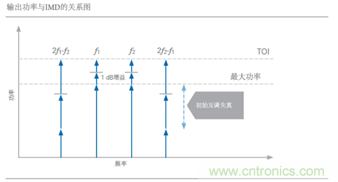 TOI是衡量射頻前端性能的重要指標,因為IMD比率取決于功率電平。TOI的測量將IMD性能的要素與絕對功率電平相結合,并通過一個數(shù)字來表示性能。