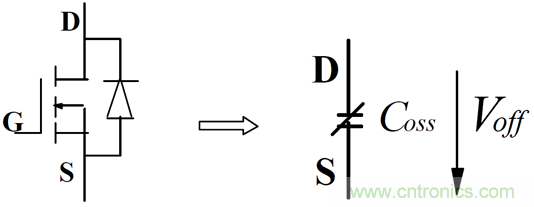 功率 MOSFET 正向截止時可用一電容等效,其容量與所加的正向電壓、環境溫度等有關,大小可從制造商的手冊中獲得。