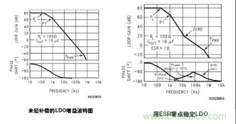 輸出電容的ESR在回路增益中產生一個零點,用來減少過量的負相移。增加系統的帶寬,使更穩定。零點處的頻值: