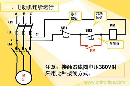 我們舉例說明接觸器如何起到自鎖,互鎖的作用: