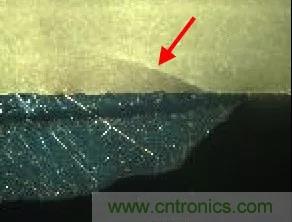 因?yàn)镸LCC主要成分是陶瓷,在放置元件,分板,上螺絲等工序中,很可能因?yàn)闄C(jī)械應(yīng)力過(guò)大導(dǎo)致電容受擠壓破裂,從而導(dǎo)致潛在的漏電失效。此時(shí)的裂縫一般呈斜線,從端子與陶瓷體的結(jié)合處開裂。