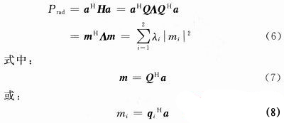 式中:|·|表示復數的模,上角標H表示厄米特轉置。那么,輻射功率就可以表示為: