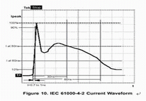 以系統級的方法來定義典型的ESD事件所采用的最常見的波形,是以其亞納秒上升時間和高電流電平(參見圖1)為顯著特征的IEC61000-4-2波形。這種波形的規范要求采用四級ESD量級。大部分設計工程師都要求把產品限定到最高級的8kV的接觸放電或15kV的空氣放電。當進行元器件級測試時,因為空氣放電測試在這樣的小型元器件上是不能重復的,接觸放電測試則是最適合的測試方式。