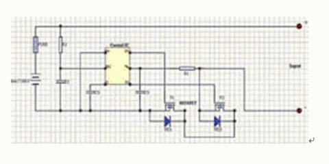 ---此保護(hù)回路由兩個(gè)MOSFET和一個(gè)控制IC外加一些阻容元件構(gòu)成。控制IC負(fù)責(zé)監(jiān)測(cè)電池電壓,并控制兩個(gè)MOSFET的柵極,MOSFET在電路中起開關(guān)作用,分別控制著充電回路與放電回路的導(dǎo)通與關(guān)斷,fuse為熔斷器起二級(jí)保護(hù),C2為延時(shí)電容,該電路具有過(guò)充電保護(hù)、過(guò)放電保護(hù)、過(guò)電流保護(hù)與短路保護(hù)等功能。