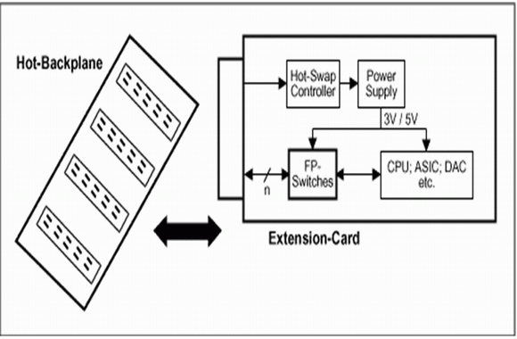 除了一些典型應(yīng)用以外,例如在ATE和工業(yè)設(shè)備中作為模擬輸入的保護(hù),這些低電壓、故障保護(hù)型開關(guān)還可以在很多其他應(yīng)用中用來簡(jiǎn)化設(shè)計(jì)和解決板上空間不足的問題。舉例來講,為了避免切斷整個(gè)設(shè)備機(jī)箱的電源,許多應(yīng)用要求能夠向一個(gè)帶電的底板插入擴(kuò)展卡。盡管可以用MAX4271這樣的熱插拔控制器來限制卡上的浪涌電流,但其信號(hào)線的保護(hù)并不容易。當(dāng)你將板卡插入底板時(shí),底板的數(shù)據(jù)總線采用5V TTL電平進(jìn)行通信,這時(shí)卡上的數(shù)字IC (微控制器,ASIC等)就有可能在5V電源接通前在其輸入端“看到”5V電壓。前面已經(jīng)提到,這種情況會(huì)導(dǎo)致鎖定或板卡損壞。