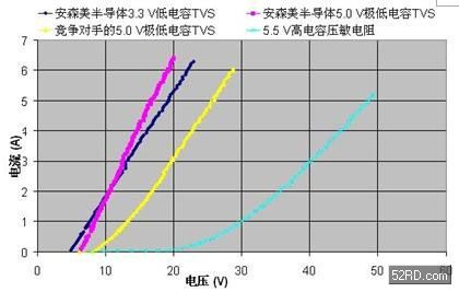 圖5:不同ESD保護(hù)元件的TLP測(cè)試I-V曲線