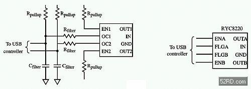在匯流排供電的集線器、雙模式的集線器以及低功率主機中,PowerSwitch元件是最為常用的解決方案。這種元件還可用于USB設備中作為沖擊電流限制元件。PowerSwitch元件內置了包括電源開關功能的電流限制功能,提供較低的導通電阻和快速的電流限制特性。這些特性均有其應用在功率有限的主機中。在這種主機中加入電源開關功能,就可以通過關閉出現故障的埠端來作最大限度地節省能量。