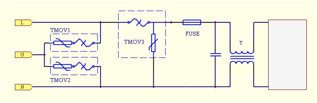 因此,我們認(rèn)為,對于家用電器而言,最好的模式是采用全模保護(hù),即共模保護(hù)加差模保護(hù)。