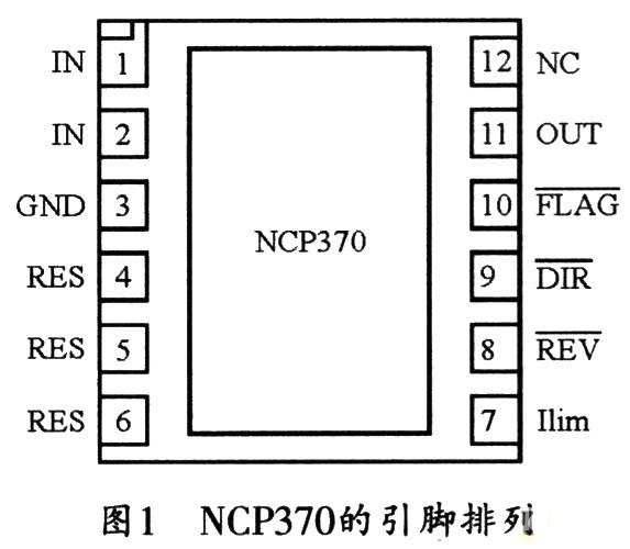 NCP370采用3 mm×3 mm×0.55 mm LLGA-12無鉛封裝,圖1所示是其引腳排列圖,各引腳的功能如下: