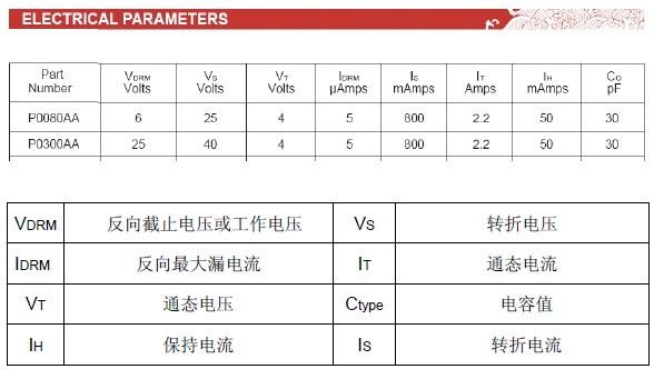 • VS:轉折電壓必須小于設備能承受的最大瞬態峰值電壓