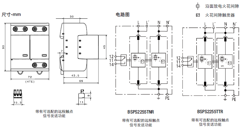 • 由于采用了耐用的氧化鋅變阻器和火花間隙技術(shù),具有很高的浪涌 放電容量