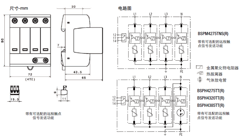 這種四極設(shè)備的特點是,用于TNS 230/400V系統(tǒng)("4-0"電路)中防止浪涌。