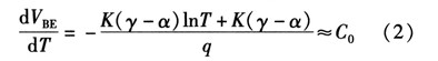如果忽略由溫度變化引起lnT項變化對式(2)的影響,dVBE/dT可近似等于常數C0。常溫下C0約為-2 mV/K。為了簡化計算,則PN結關于溫度的變化方程可近似線性為![]()