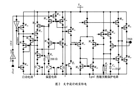 整個工作過程中,TSD的正反饋起到了遲滯的作用。使得正常工作時,TSD輸出高電平作用于電路其它模塊。當溫度過高時,TSD輸出低電平作用于電路其它模塊,使芯片停止工作,保護芯片。