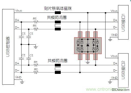 問題:其中一些點可能不受影響,這些點包括外購USB控制器的技術性實現,或最終用戶使用“便宜的”USB電纜。因此必須采取一些預防性措施,防止接口受到可能損壞USB控制器的外部干擾的影響,同時通過電纜限制信號的干擾輻射量。