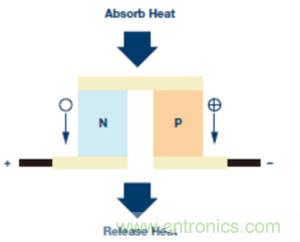圖3.珀爾帖效應:P-N半導體對的熱流