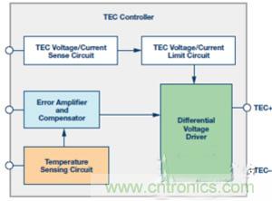 設計電信系統中激光二極管的TEC控制器系統是一項很復雜的工作。除了熱精度方面的挑戰之外,封裝尺寸通常非常小,功耗容差也很低。一般而言,設計精良的TEC控制器應具備如下優點:精準溫度調節、高效率、板尺寸很小、低噪聲、電流和電壓監控與保護。