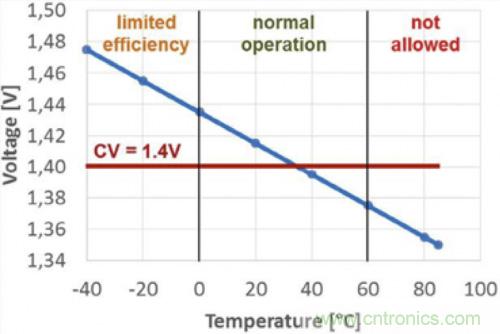 圖2.每電芯1.40 V充電電壓與溫度的關系
