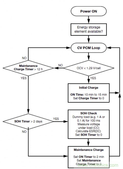 注:第2-5步補償自放電效應并通過這種涓流充電使儲能元件保持健康狀態,同時還維持更長的時間。
