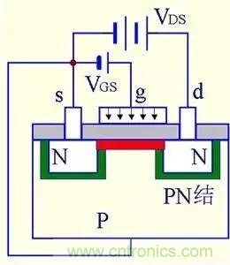(1) VGS=0時,不管VDS極性如何,其中總有一個PN結反偏,所以不存在導電溝道。