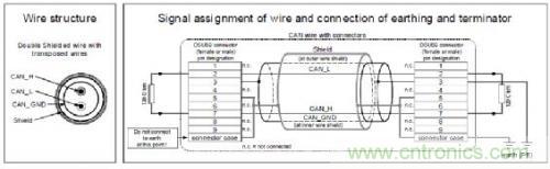線纜的芯截面積要大于0.35~0.5 mm2 ,CAN_H對CAN_L的線間電容小于75 pF/m,如果采用屏蔽雙絞線,CAN_H (或CAN_L) 對屏蔽層的電容小于110 pF/m。可以更好地降低線纜阻抗,從而降低干擾時(shí)抖動(dòng)電壓的幅度。