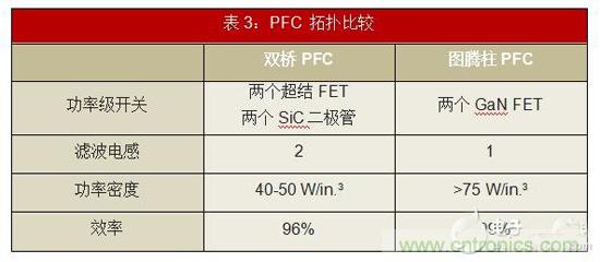 表3總結了這種無橋PFC設計的幾個主要優(yōu)點,并做了進一步闡述: