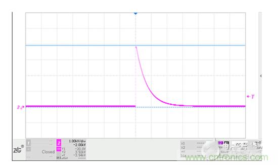 以SP00S12模塊為例,它可以滿足 IEC/EN61000-4-5 ±4KV 浪涌等級(jí)要求,可用于各種信號(hào)傳輸系統(tǒng),抑制雷擊、浪涌、過壓等有害信號(hào),對(duì)設(shè)備信號(hào)端口進(jìn)行保護(hù),非常適合于CAN、 RS-485 等通信領(lǐng)域的浪涌防護(hù)。以共模浪涌測(cè)試為例,在SP00S12輸入端加載4KV、 1.2/50μs 浪涌電壓(圖4),在輸出端測(cè)試壓降已被降低至17.1V(圖5)。