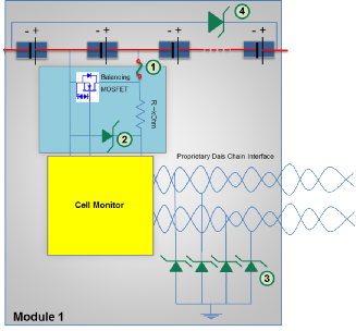 ·更多的控制器模塊的增加以及對簡化車輛中的通信網(wǎng)絡(luò)(也可以減少電纜的數(shù)量,從而降低總重量)的希望推動了對更大帶寬的需求。無論選擇哪種通信方案,雙通道和四通道低電容 ESD 陣列都可以用來提供所需的保護(hù)。