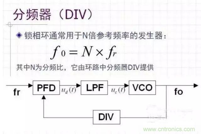鎖相環路的性能鎖相環的基本性能包括捕獲過程與同步。(1)捕獲過程的性能指捕獲帶和捕獲時間。捕獲帶指環路能通過捕獲過程而進入同步狀態所允許的最大固有頻差捕獲時間是環路由起始時刻到進入同步狀態的時刻之間的時間間隔Frequency deviation capability 》》 the max. PLL capture range(2)環路鎖定之后穩態頻差等于零,進入同步狀態。穩態相差通??偸谴嬖诘?,它是一個固定值。環路的跟蹤性能輸入信號變化越快,跟蹤性能就越差。暫態相位誤差和穩態相位誤差的大小,是衡量環路線性跟蹤性能好壞的重要標志。環路噪聲性能噪聲包括輸入噪聲與諧波干擾和內部噪聲與諧波干擾,壓控振蕩器內部的噪聲是主要的噪聲源。環路捕獲性能捕獲帶越寬越好,捕獲時間越短越好,可提高環路的增益K或者增加濾波器的帶寬,但加大環路增益或濾波器帶寬往往是與提高環路的跟蹤性能和濾波性能的要求相矛盾。采用輔助捕獲的方法達到目的。包括輔助鑒頻和鑒頻鑒相,變帶寬和變增益等。