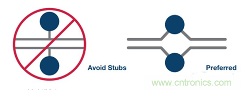 差分對(duì)布線時(shí),應(yīng)使用對(duì)稱布線(參見圖24)。若需要測試點(diǎn), 應(yīng)避免引入走線分支,而且測試點(diǎn)應(yīng)對(duì)稱放置(參見圖25)。