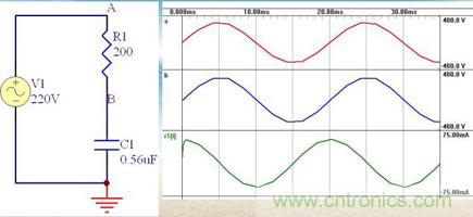 電容器實際上起到一個限制電流和動態分配電容器和負載兩端電壓的角色。