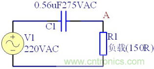 阻容降壓電路可以等效為由降壓電容C1和負載電阻R1組成,電阻和電容串聯分壓。