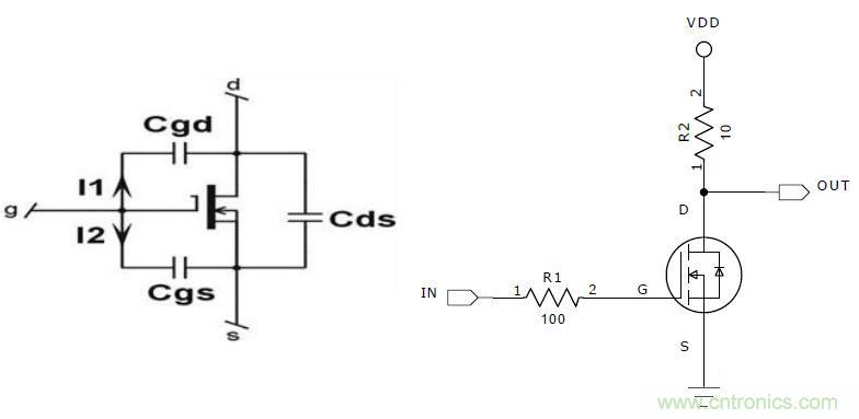 MOS管等效電路及應用電路如下圖所示: