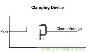 在實(shí)際的電路中,如圖2所示,在DC input的時候,有時由于供電環(huán)境的變化會帶來一些瞬時脈沖。而要消除瞬時脈沖對器件損害的最好辦法,就是將瞬時電流從敏感器件引到地,一般具體做法是將TVS在線路板上與被保護(hù)線路并聯(lián)。這樣,當(dāng)瞬時電壓超過電路正常工作電壓后,TVS將發(fā)生雪崩擊穿,從而提供給瞬時電流一個超低阻抗的通路,其結(jié)果是瞬時電流通過TVS被短路到GND,從而避開被保護(hù)器件,并且在電壓恢復(fù)正常值之前使被保護(hù)回路一直保持截止電壓。而當(dāng)瞬時脈沖結(jié)束以后,TVS二極管再自動恢復(fù)至高阻狀態(tài),整個回路又回到正常電壓狀態(tài)。