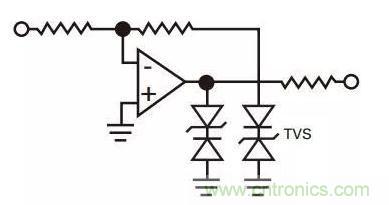 集成運(yùn)放對外界電應(yīng)力非常敏感。因此,在使用運(yùn)放的過程中,如果因操作失誤或采取了不正常的工作條件,往往會出現(xiàn)過大的電壓或電流,特別是浪涌和靜電脈沖,從而很容易使運(yùn)放受損或失效。5V輸出的直流穩(wěn)壓電源,在其穩(wěn)壓輸出端加上SMBJ5.0CA,可以保護(hù)使用該電源的儀器設(shè)備,同時還可以吸收電路中晶體管的集電極到發(fā)射極間的峰值電壓,從而保護(hù)晶體管。因此建議在每個穩(wěn)壓源的輸出端增加一個SMBJ5.0CA管,這樣可以大幅度地提高整機(jī)的可靠性。