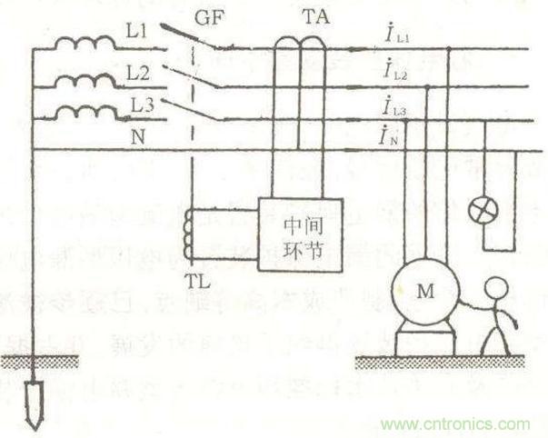 像我們家中的漏電保護(hù)器的原理圖就如上圖一般,漏電保護(hù)器就是一種電流形繼電器,當(dāng)電流大于設(shè)定值的時候是開關(guān)跳閘。