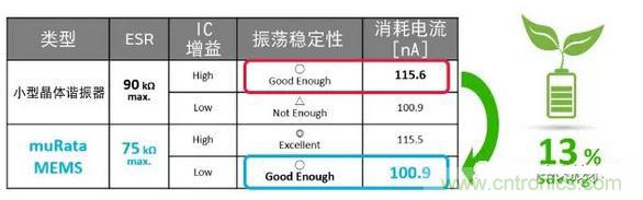 由于其低ESR的特性,可降低IC增益。因此,可抑制振蕩電路的消耗電流,實現整個設備的低功耗。
