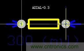 【導(dǎo)讀】直插式電阻封裝為AXIAL-xx形式(比如AXIAL-0.3、AXIAL-0.4),后面的xx代表焊盤中心間距為xx英寸,這個(gè)尺寸肯定比電阻本身要稍微大一點(diǎn)點(diǎn)。