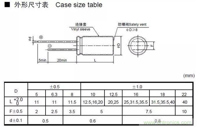 二、直插式電容封裝及尺寸