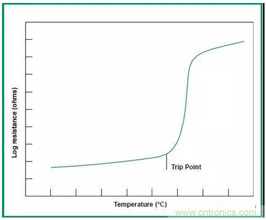 上圖是PTC的阻抗溫度特性,當過流的時候PTC發熱,溫度迅速上升,PTC的阻抗迅速變大,形成斷路,斷路后電流下降,發熱減少,溫度下降,PTC恢復低阻抗。因此,PTC非常適合短時過流。
