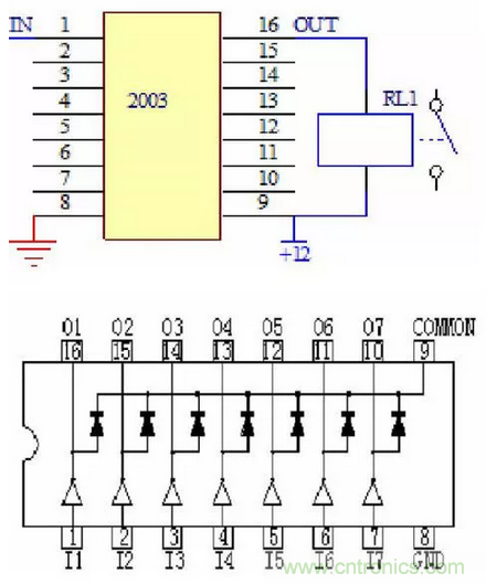 2 集成電路2003驅(qū)動繼電器