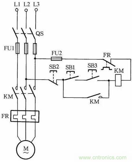 圖中SB2為停止按鈕,在停止時,按動SB2的時間要長一點。否則,手松開按鈕后,接觸器又吸合,使電動機繼續(xù)運行。這是因為電源電壓雖被切斷,但由于慣性的作用,電動機轉子仍然轉動,其定子繞組會產生感應電動勢,一旦停止按鈕很快復位,感應電動勢直接加在接觸器線圈上,使其再次吸合,電動機繼續(xù)運轉。