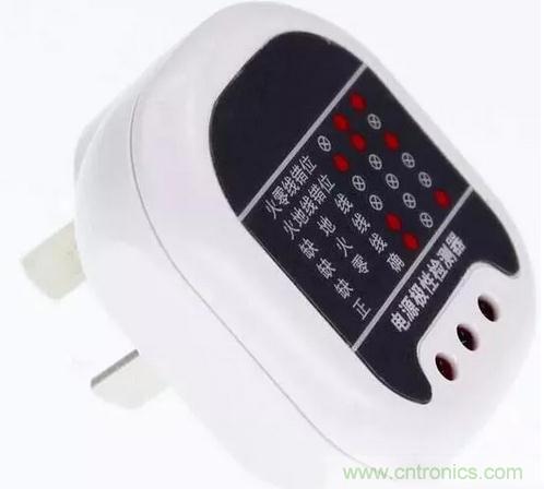 所以我們可以使用電源極性檢測器來判斷電路中有一個插座的零線跟地線接反,確定是哪一個插座接反了,只要把電源極性檢測器一個插座一個插座試一下就可以了,注意是在送電的狀態下來檢測的。