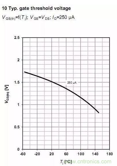 相信這個值大家都熟悉,但是Vgs(th)是負溫度系數有多少人知道,你知道嗎?(下面兩圖分別來自BSC010NE2LS和IPP075N15N3 G datasheet.)